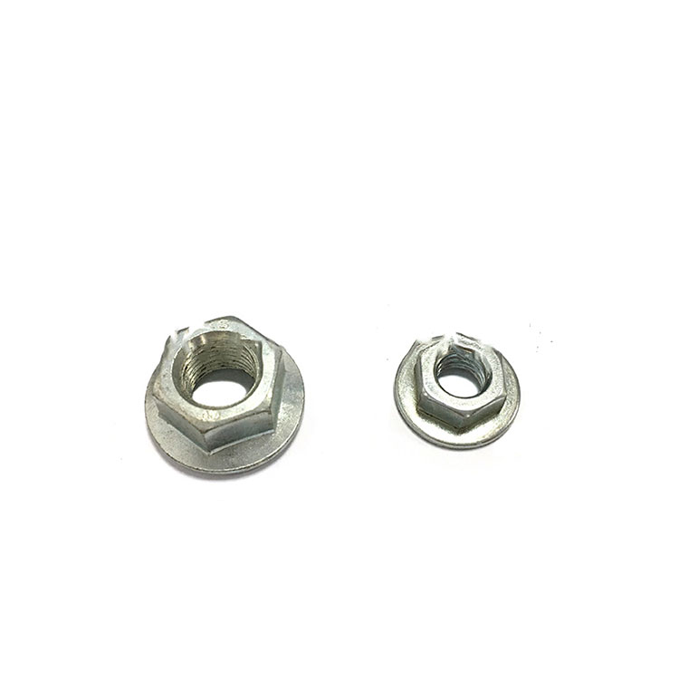 जस्ता प्लेटेड ग्रेड 4 गार्डे 8 हेक्स फ्ल्यांज सेरेटेड नट- DIN6923